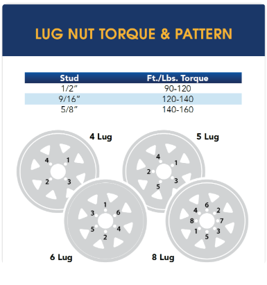 - Inspection of Lug Nuts – The FMCSRs do not specifically regulate how much torque must be used on tractor or trailer tires, relying upon industry standards and equipment specifications. Most industry standards require between 400 and 500 pounds of torque. Drivers must inspect wheels and fasteners in addition to tire tread and inflation.